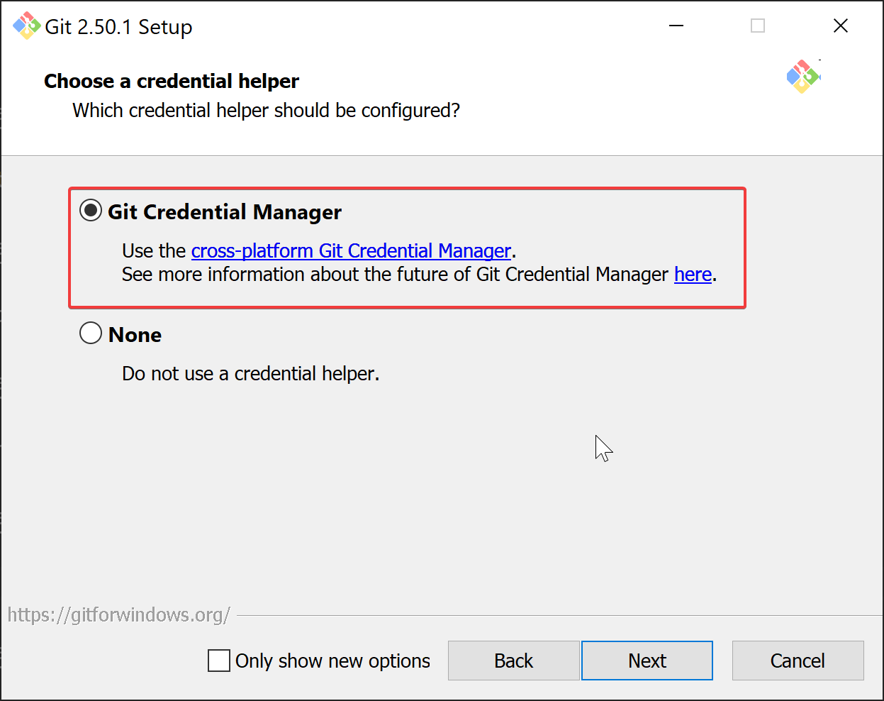 - Select "Git Credential Manager".