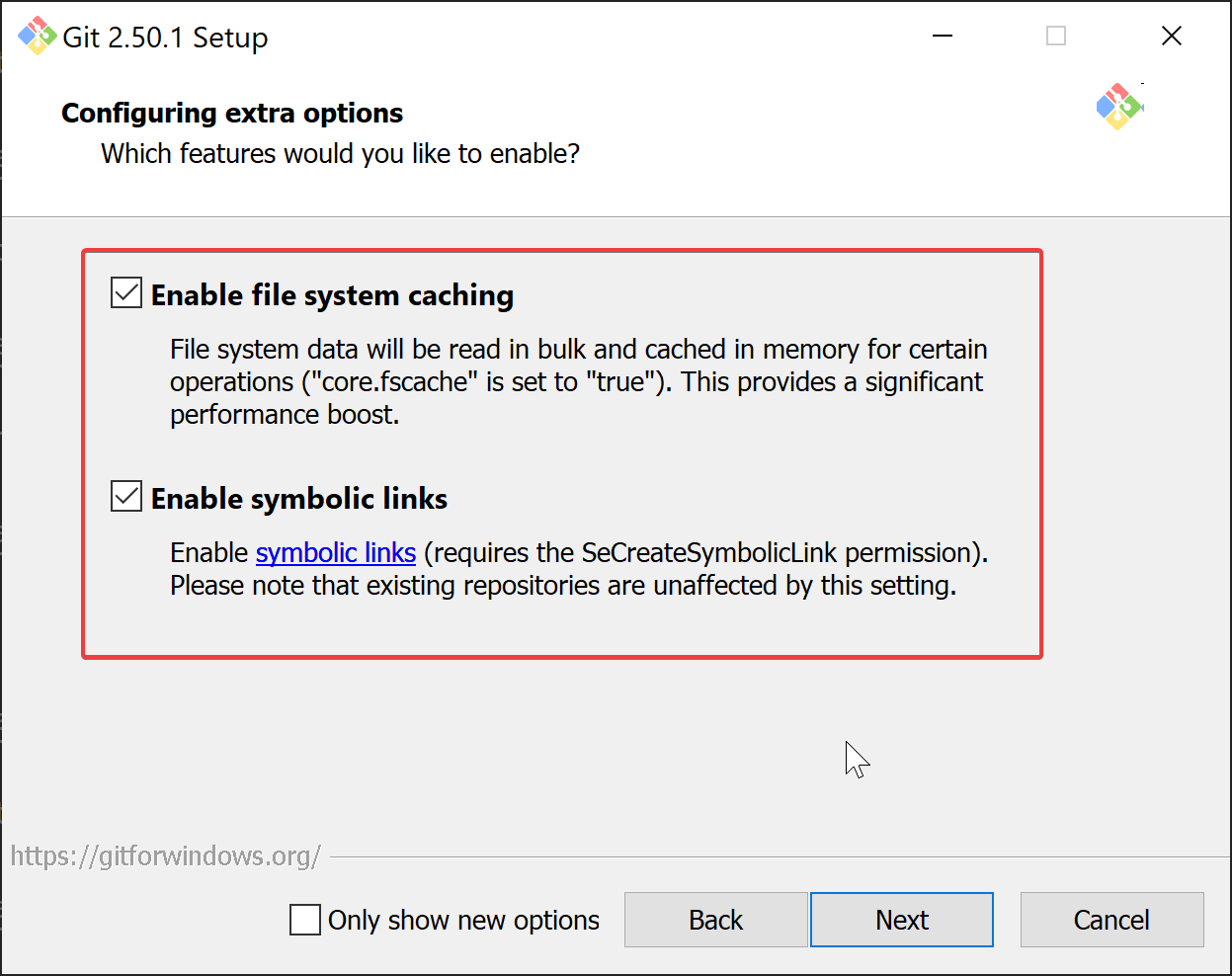 - Enable both file-system caching and symbolic links.