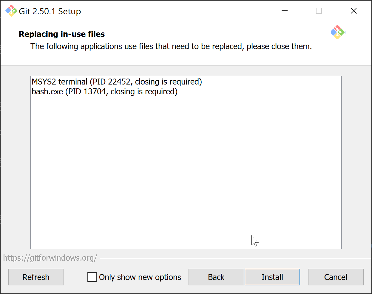 - You may be prompted with this screen. If so, close all other windows on your computer and then click "Install".