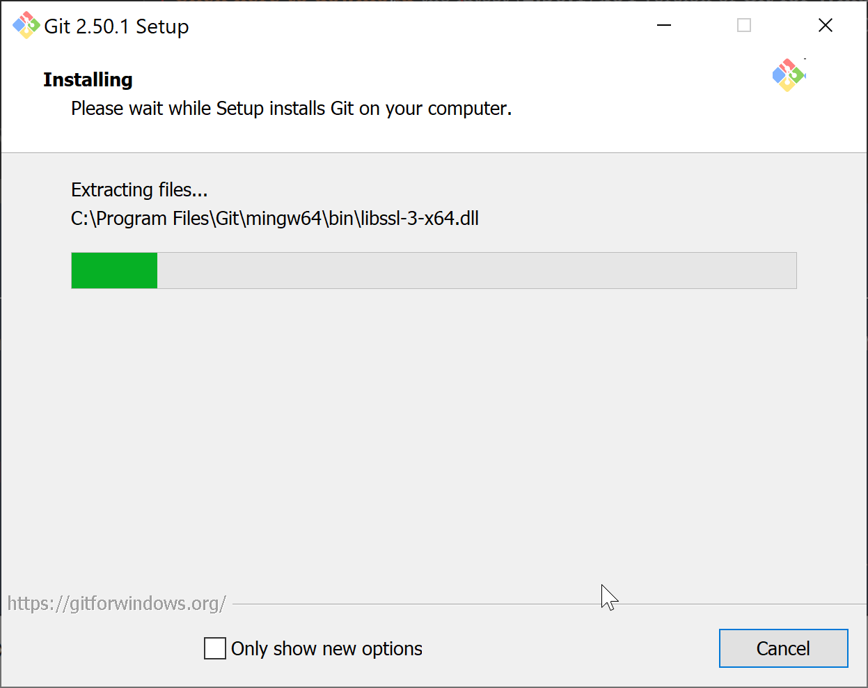 - Git will then begin to install. Be patient while it completes!