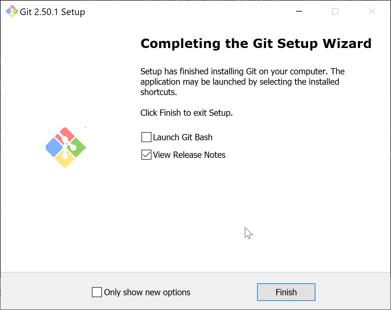- Congratulations! Git is now installed. Check "finish".