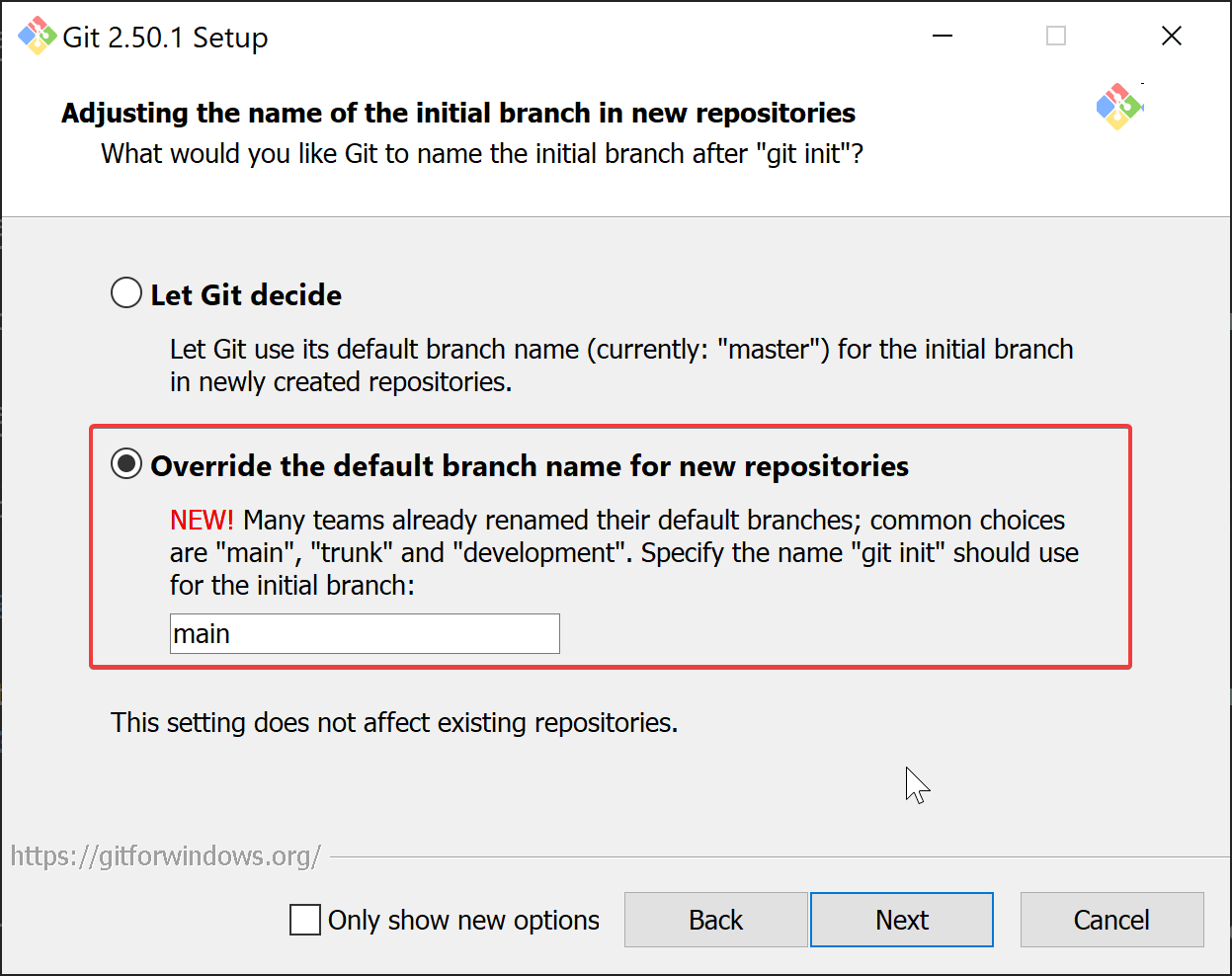 You may see a screen asking about a start menu folder. The default location (often "Git") is acceptable. Press "Next".