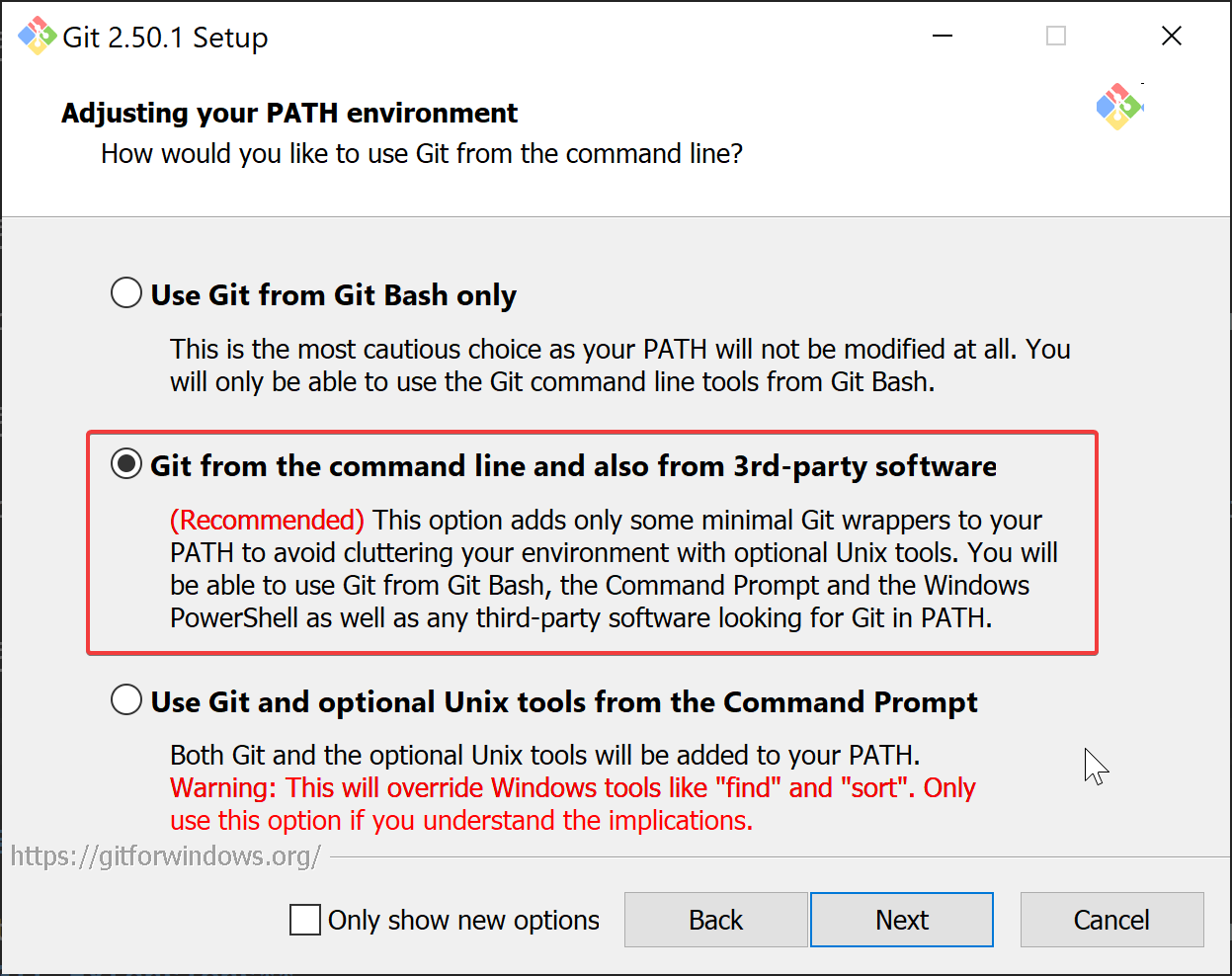 - You will then see this screen. Select the middle/"recommended" option.