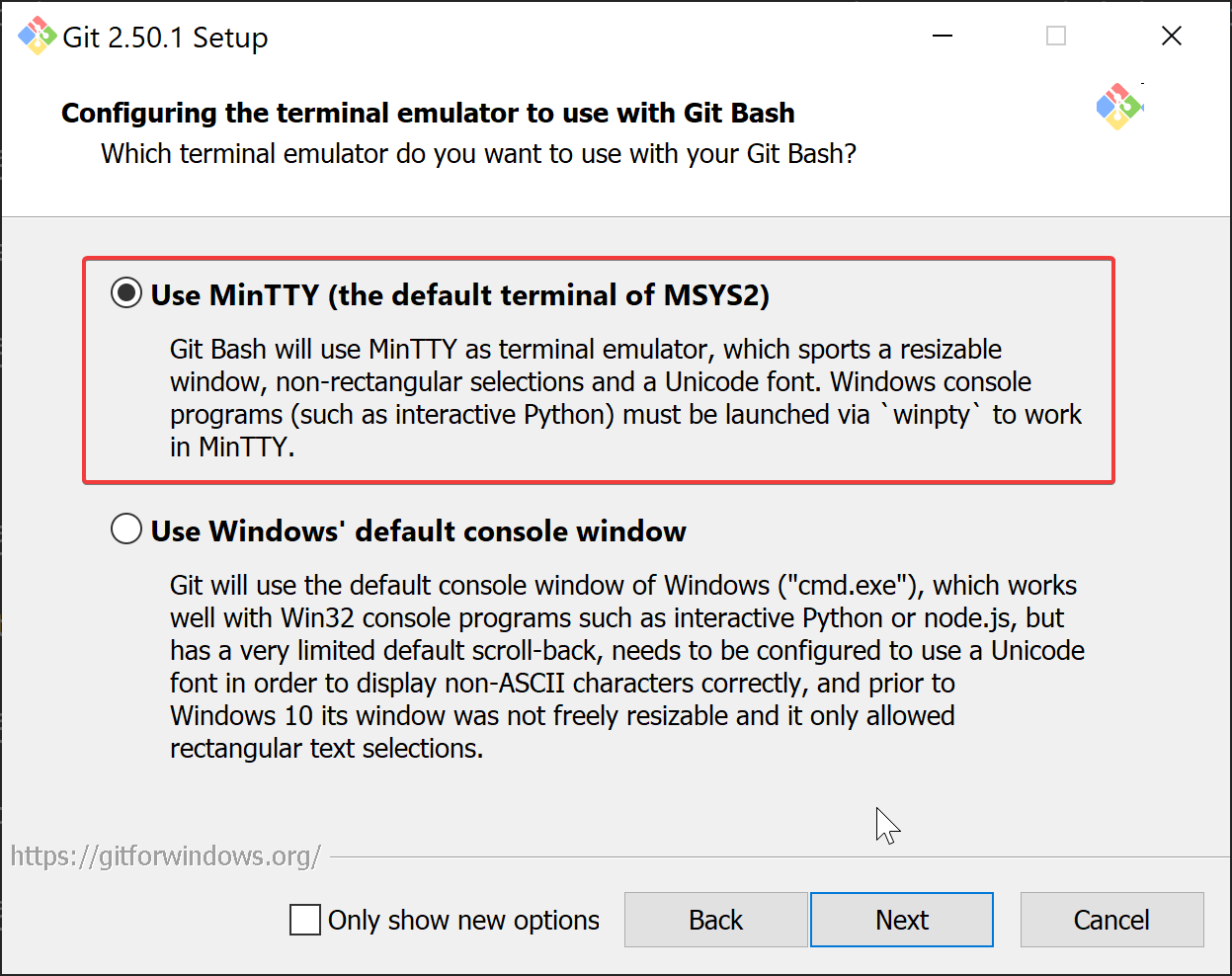 - Select "MinTTY".