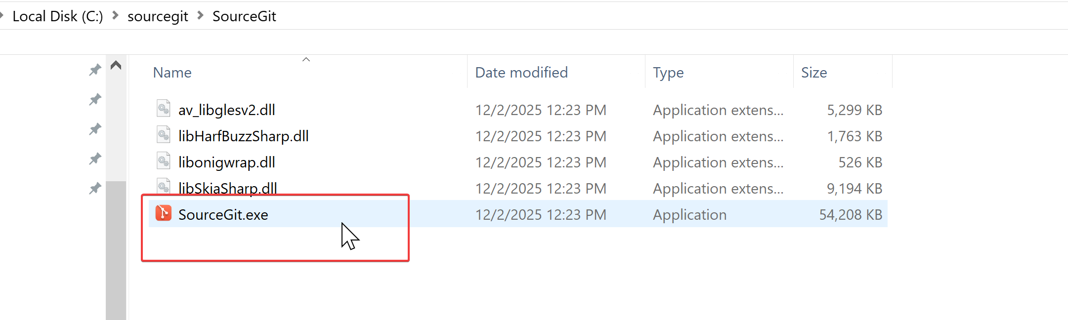 - Run the file SourceGit.exe.