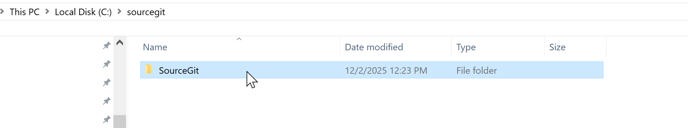 - Navigate to this folder in your File Explorer. It will contain a folder named "SourceGit". Open that folder.