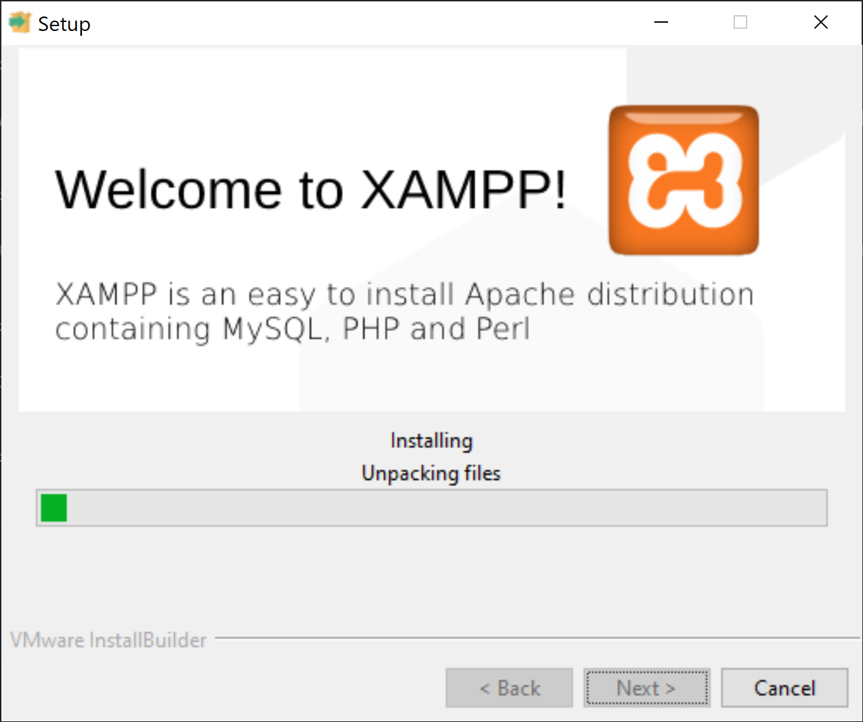 - XAMPP should now begin to install. This may take some time -- be patient!